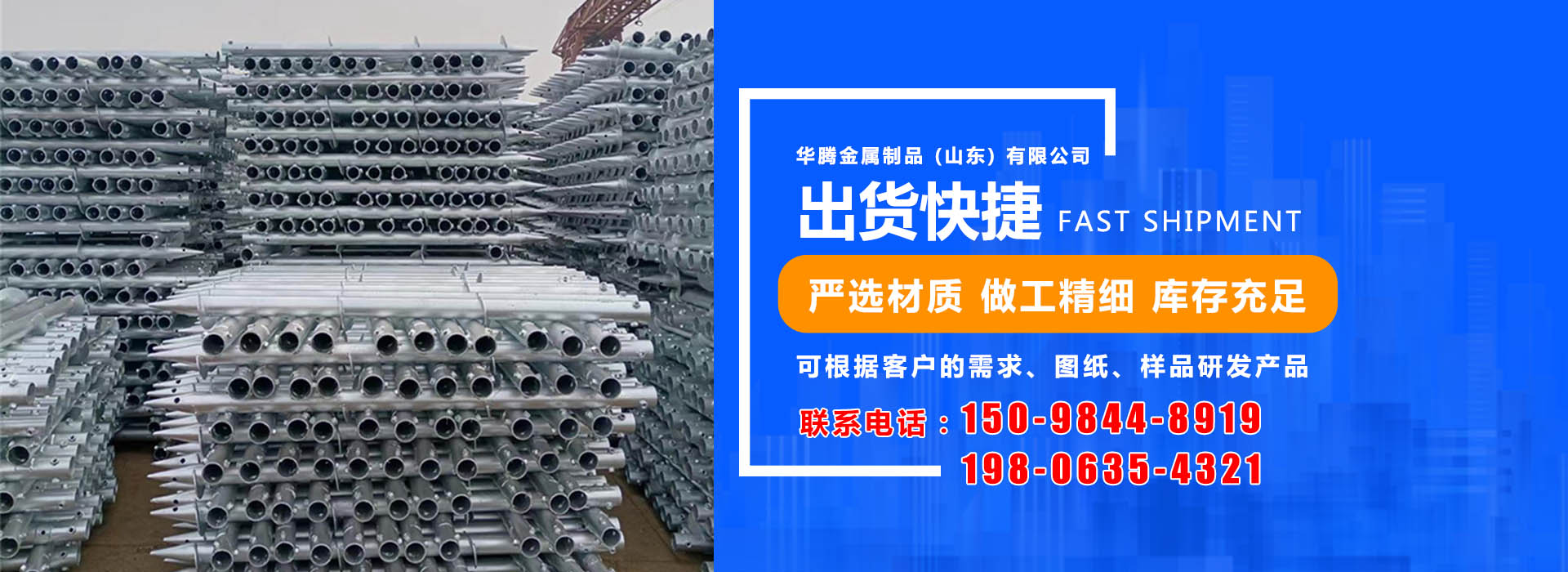 華騰金屬制品 (山東) 有限公司是螺旋地樁公司,主要經營螺旋地樁、光伏地樁等產品,品種規格齊全,并可根據客戶的需求、圖紙、樣品研發產品。